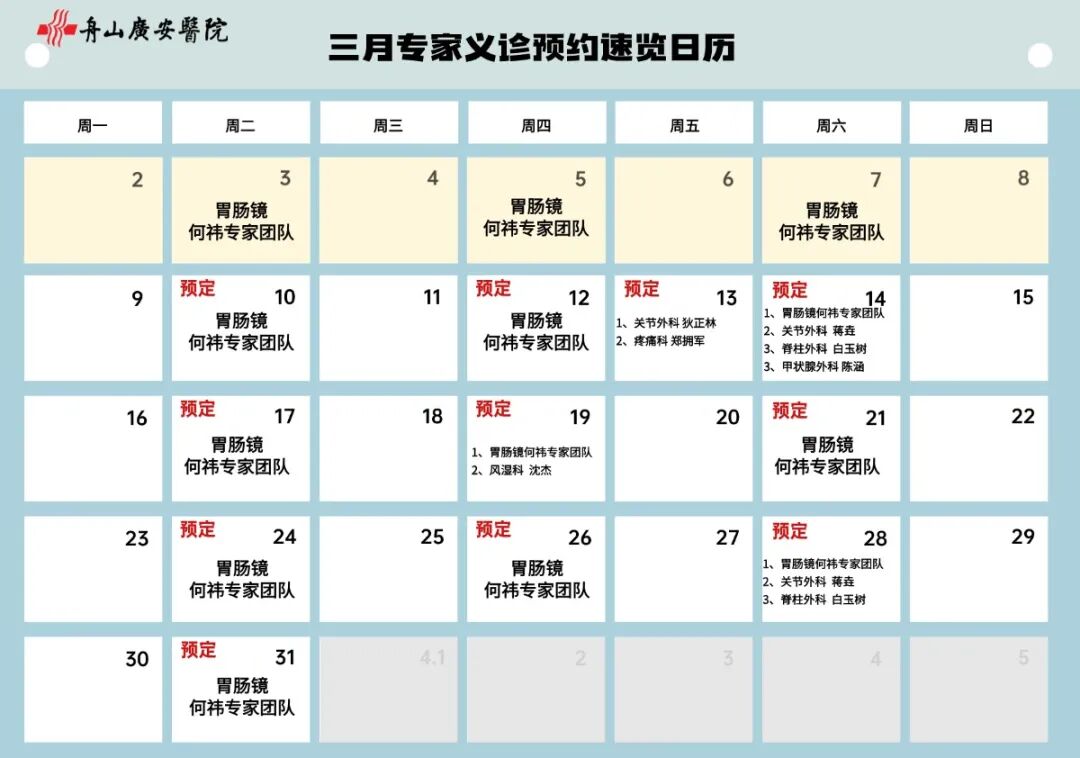 【建院23周年·广安医讯】最新外院专家义诊及3月2日—3月8日本院专家门诊安排