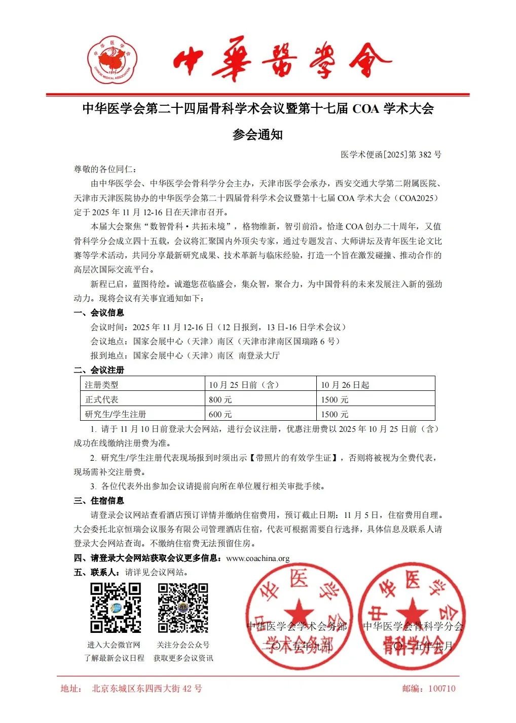 在COA大会上,“大会发言”环节旨在展示最具创新性和代表性的研究成果。获得此资格,意味着该论文的学术水平和临床价值得到了评审专家委员会的充分肯定。我院学者将在此环节与国内同行进行深度交流与探讨,这也是我们向全国顶尖水平学习、汲取前沿知识的重要机会。